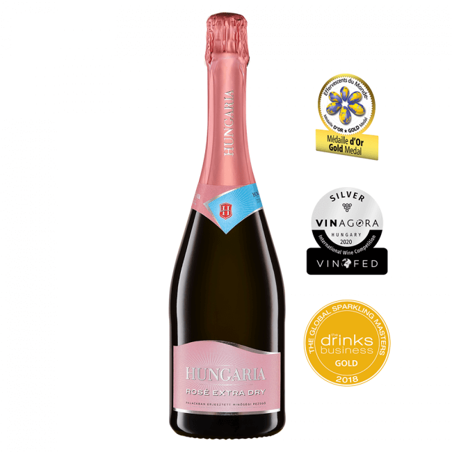 Verspielte Fruchtigkeit und ein Hauch von Ungestüm. Die Reinheit des Hungaria Extra Dry Rosé ist eine perfekte Kombination aus frühlingshaftem Wind und aufregendem Sprudel. Sein verschmitzter, subtiler Johannisbeergeschmack und seine tiefrosa Farbe laden zum Tanzen in der Nacht ein.